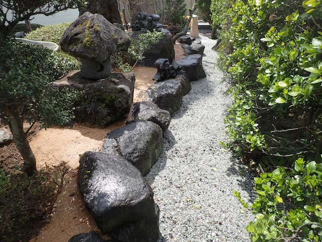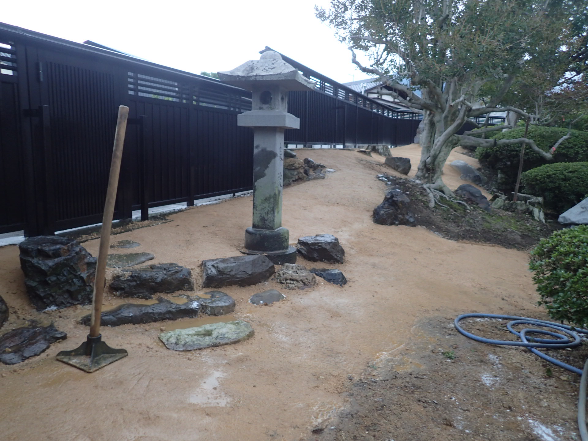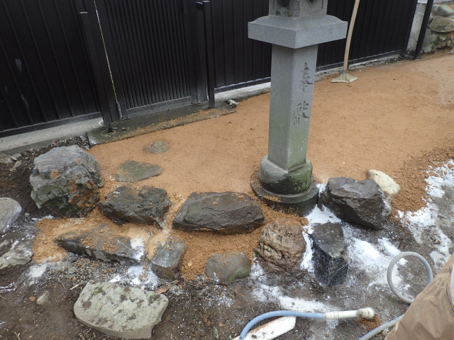 石積み後、合端、目地、隙間に苦土防草(酸化マグネシウム防草【防草の友Ⓡ】)を施せば雑草の出現を防止することが出来ます。土と混合して(水和反応、整合性等必要)詰め込めば、膨張性(酸化マグネシウムの特性)がありますので隙間の雑草を封じ込めます。自然な風合いで仕上げることができます。修景防草・日本庭園・甦る日本庭園